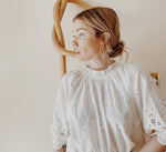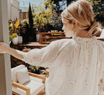 "First is comfort. I love to be comfortable and have my pieces be able to be in the shop or be out to dinner. Lots of white, I love shades of whites, beige and neutrals. I have always leaned towards a more simple approach to my wardrobe, beautiful pieces that are a staple in my closet. My fav looks right now is a flowy blouse with some white pants or blue jeans".