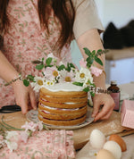 We love partnering with like minded brands! Cleobella’s approach to fashion in a beautiful, sustainable and feminine way is what we love most! The design of the apron and oven mit looks just perfect with our pretty, pink mixes!