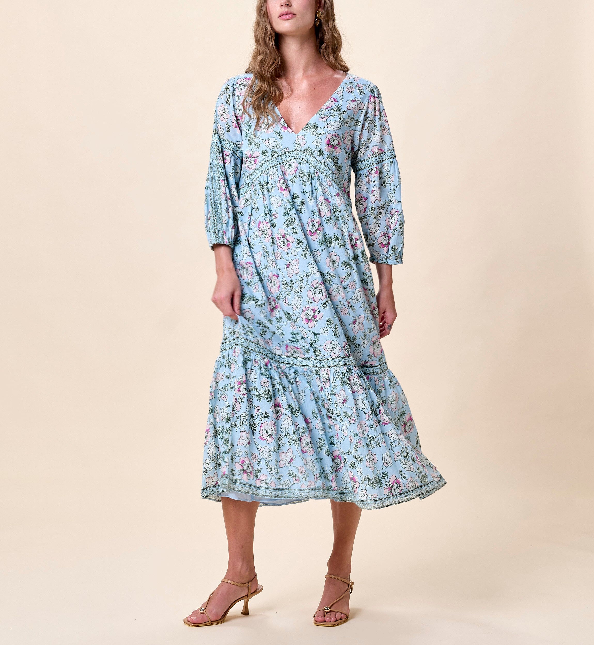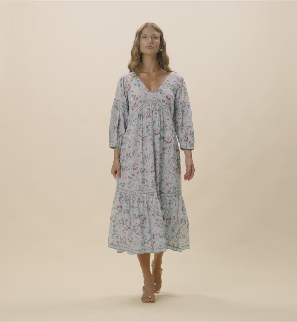 Crafted from 100% GOTS certified organic cotton mul mul, the Antonella Midi Dress in our Luna Flora print is made for spring days that lead into golden evenings. This easy slip on midi dress features a relaxed silhouette and airy 3/4 sleeves for comfort on the go. Lightweight and endlessly wearable, it’s the kind of dress you pack for every adventure from morning exploring to sunset dinners.