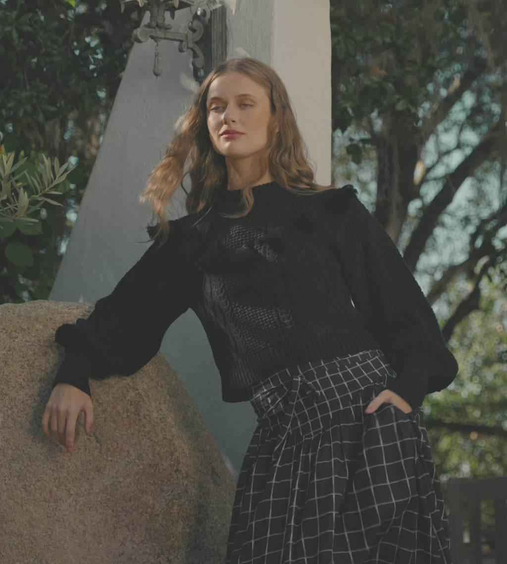 Designed with timeless appeal, the Bettina Sweater is knit from 100% organic cotton yarn for sustainable comfort. This long-sleeve sweater features playful tassel detailing along the front and finished cuffs for a refined touch. Cozy yet elevated, it’s a versatile piece that transitions seamlessly from casual days to polished evenings.