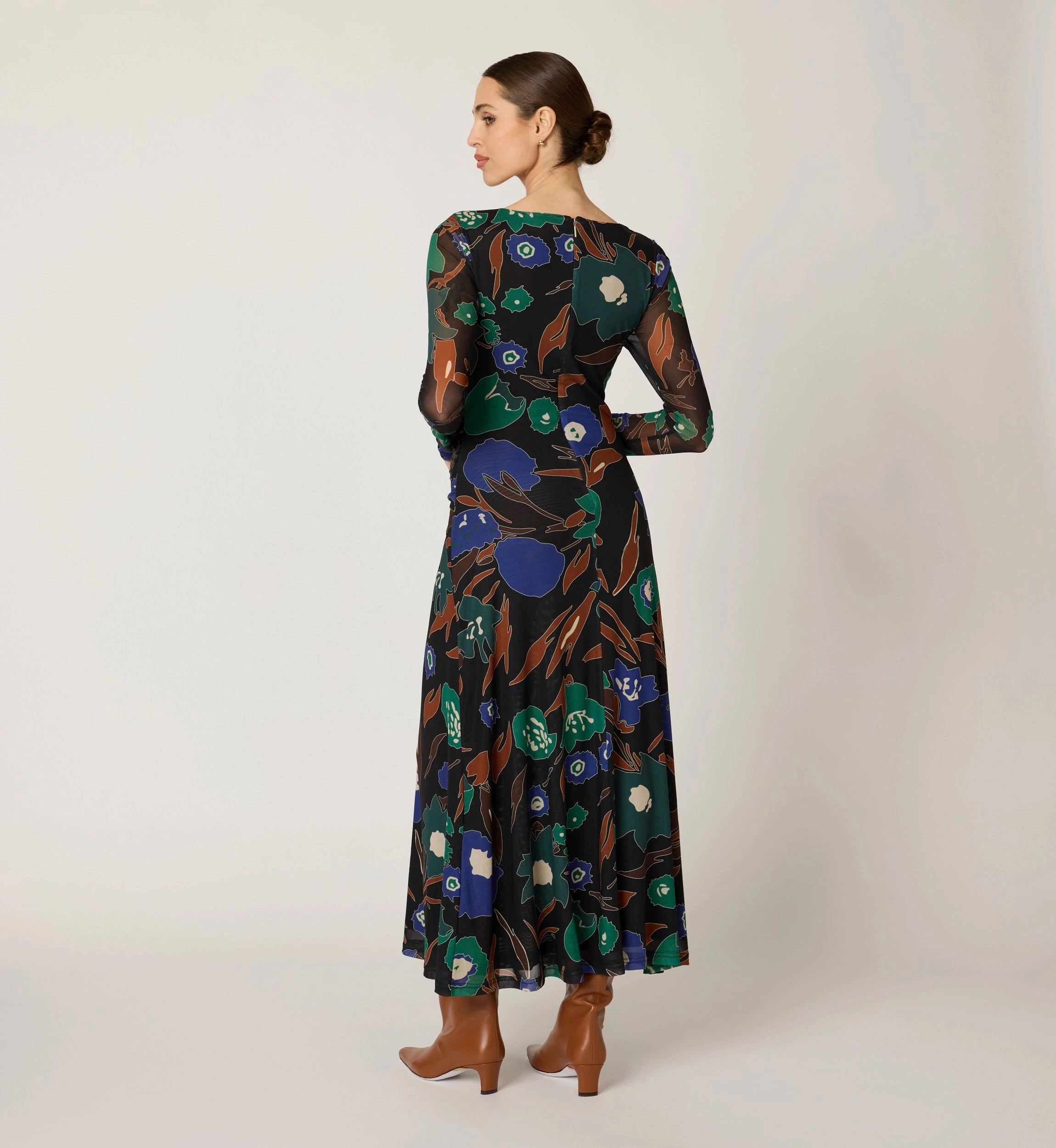 Ethically handmade in India from 88% recycled nylon and 12% elastane, the Halsey Ankle Dress is a sustainably crafted statement piece made to stand out. Designed with a relaxed A-line silhouette, this ankle-length mesh dress showcases a hand-painted print that feels both artistic and unique. Effortlessly elegant and chic, it’s the perfect style to elevate any fall occasion.