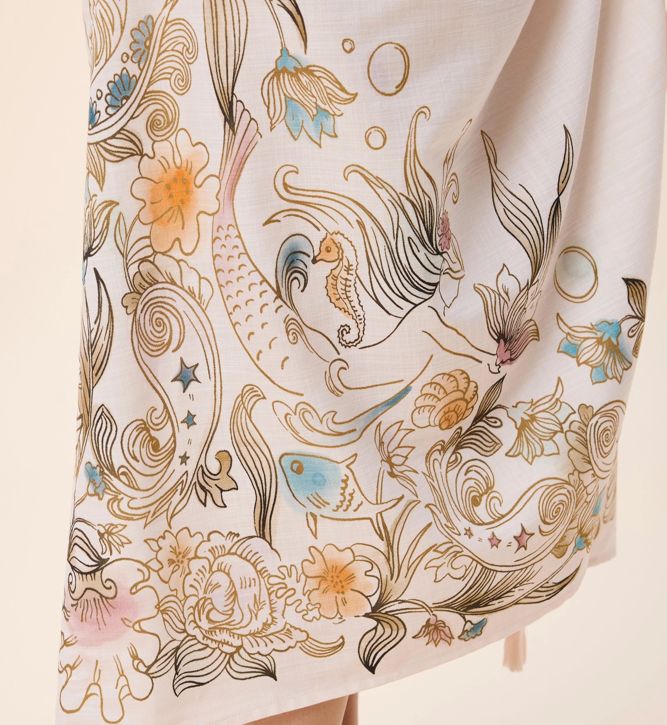 Crafted from 100% GOTS-certified organic cotton, the Helly Sarong is a beautifully versatile essential designed to elevate any beach or resort look. Detailed with soft tassels and an intricate ocean-inspired border print, it brings a touch of artistry to your warm-weather wardrobe. Style it your way—tied at the waist, draped around the neck, or wrapped across the chest—for effortlessly chic, customizable coverage all season long.