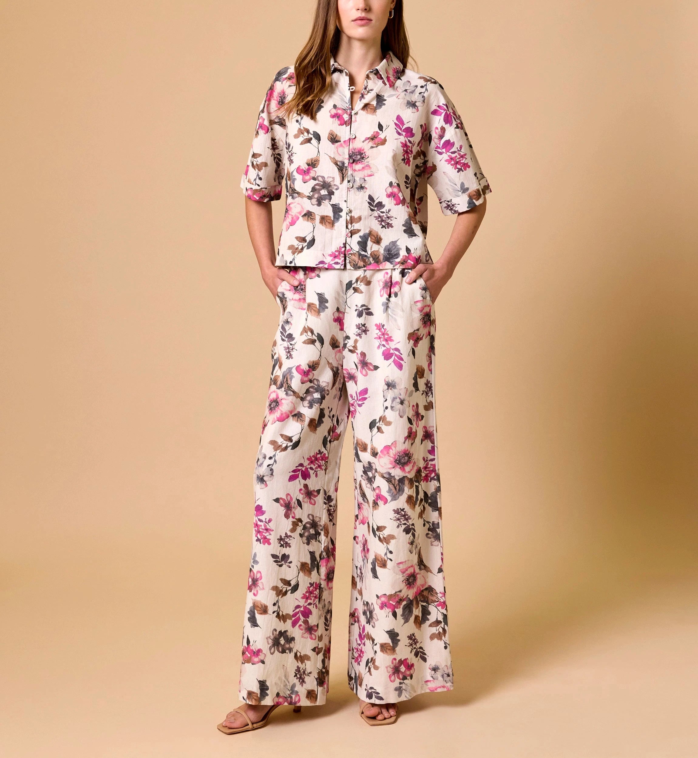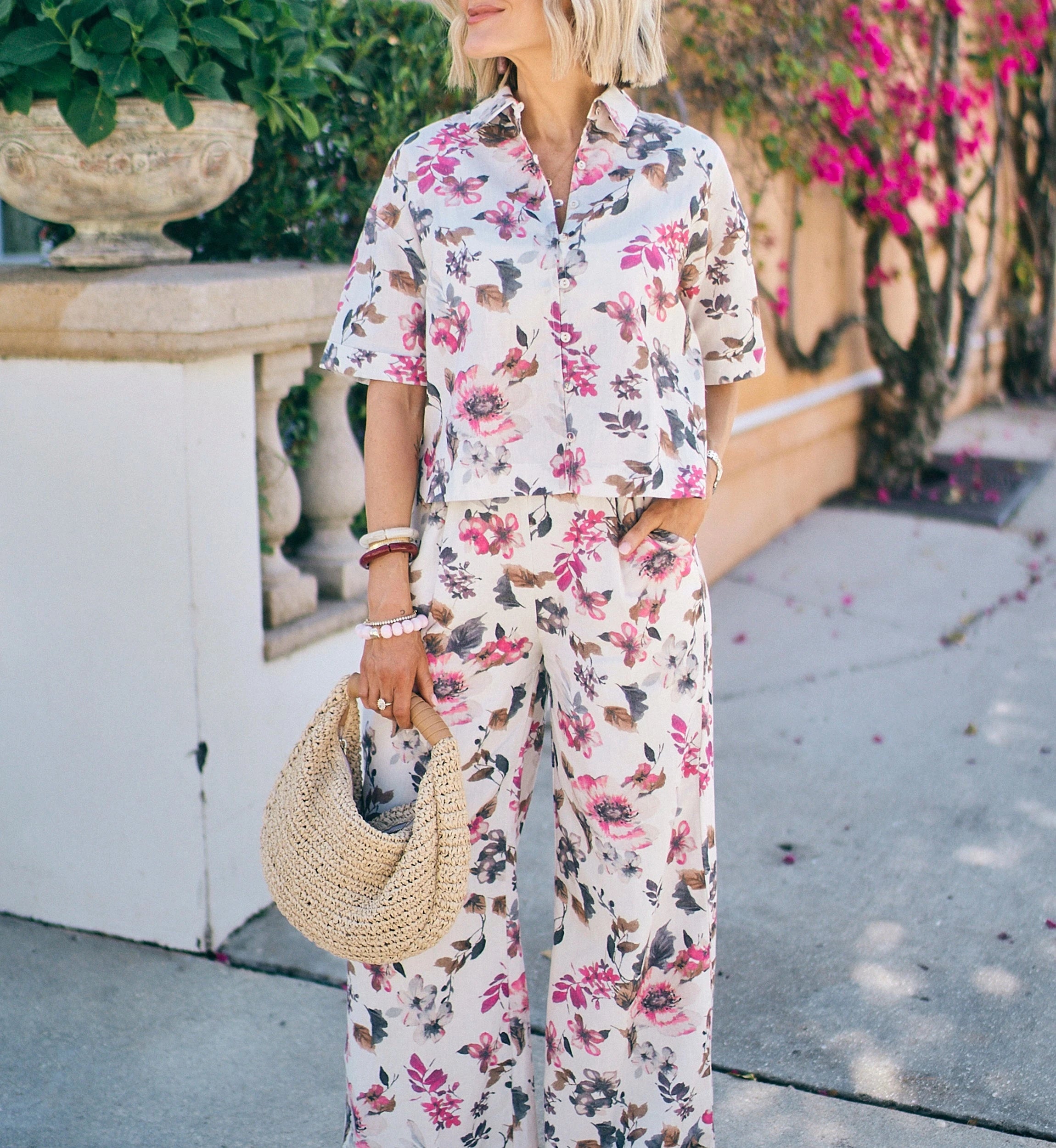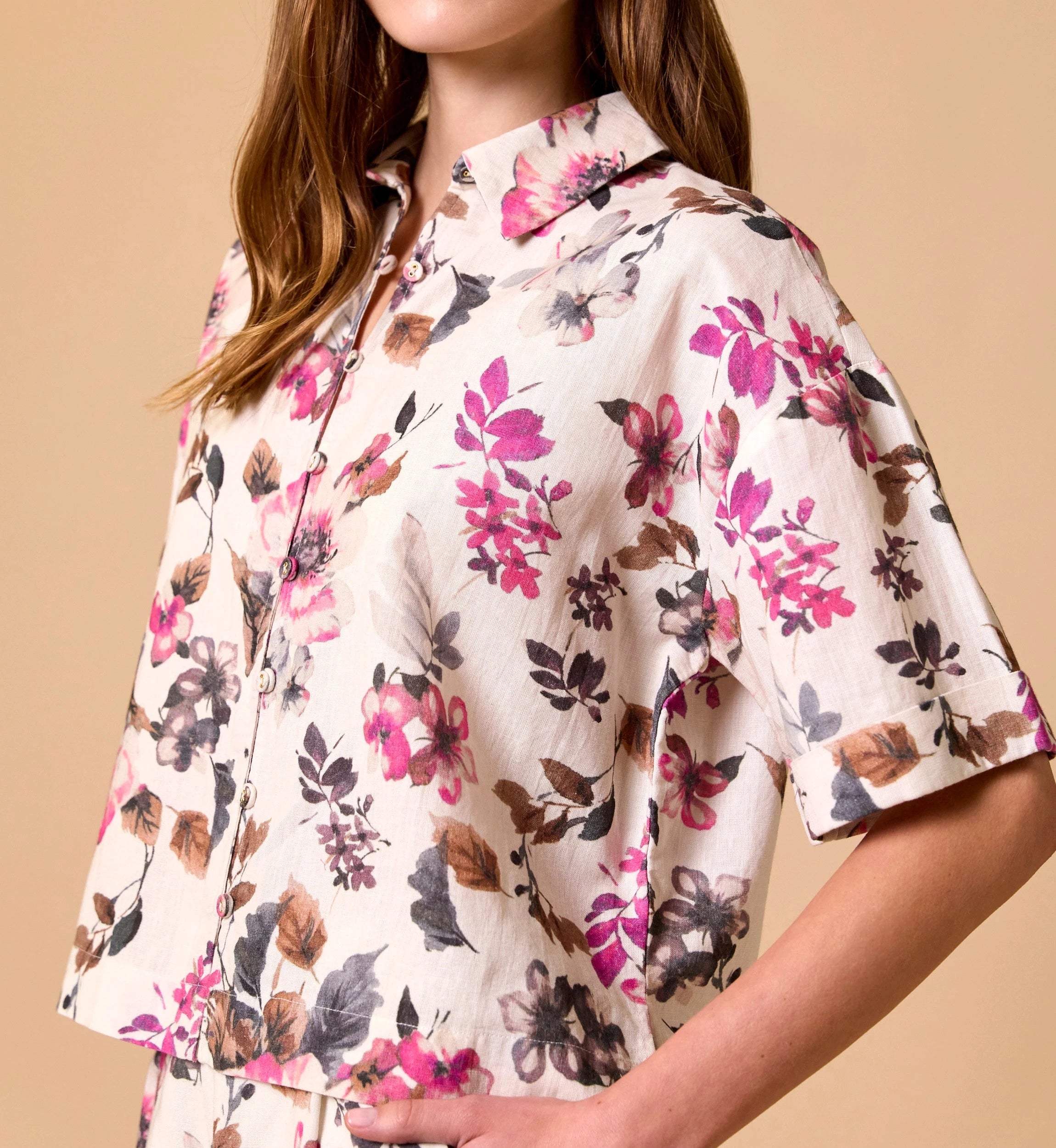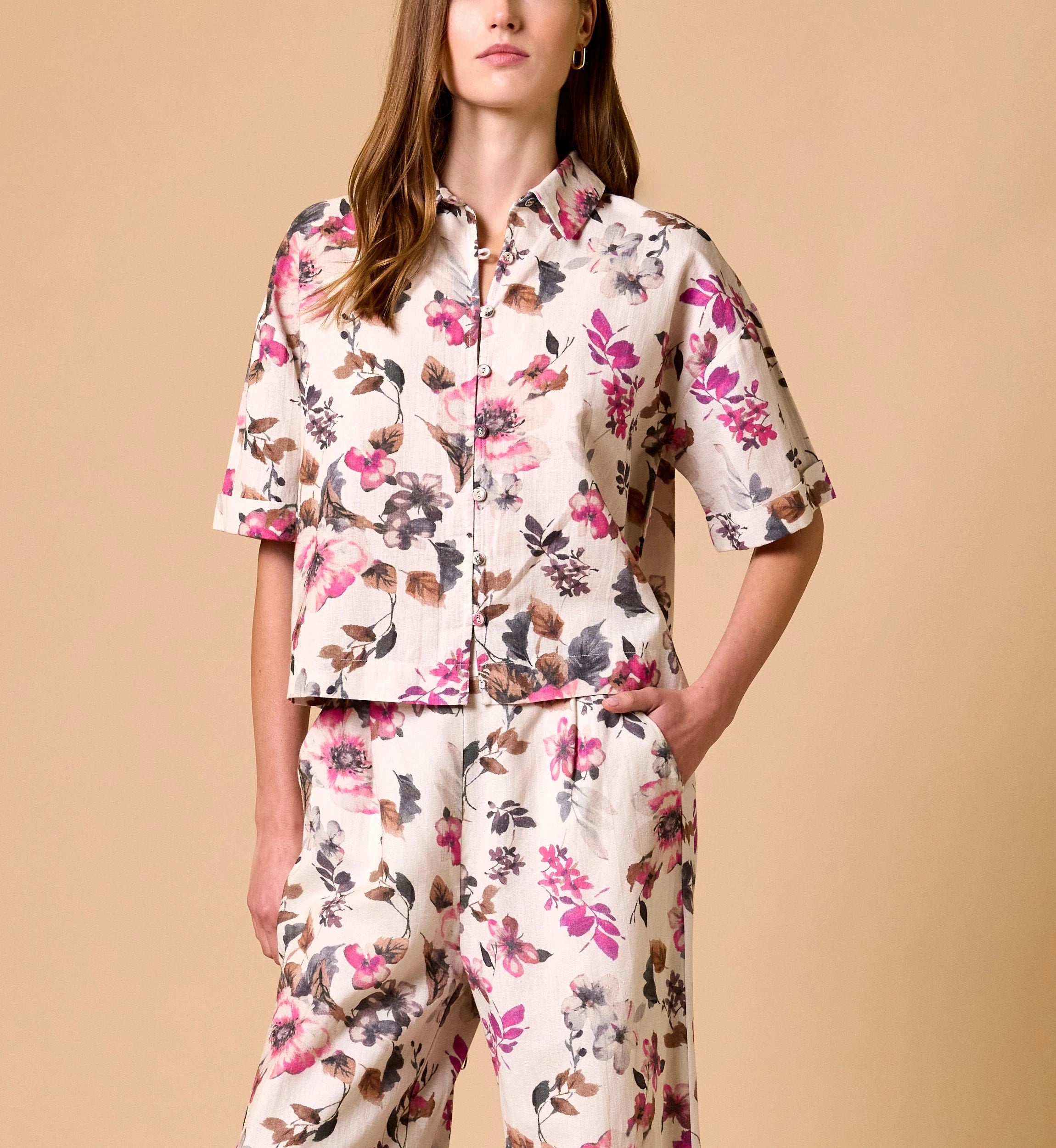 The Cleobella x Loverly Grey Jenni Blouse celebrates beauty in the details—an elevated expression of feminine artistry. Featuring a one of a kind hand painted floral design and an easy, boxy cropped silhouette, it’s designed to move with you through the season. Pair it with the matching Martin Pants for an effortlessly complete look.