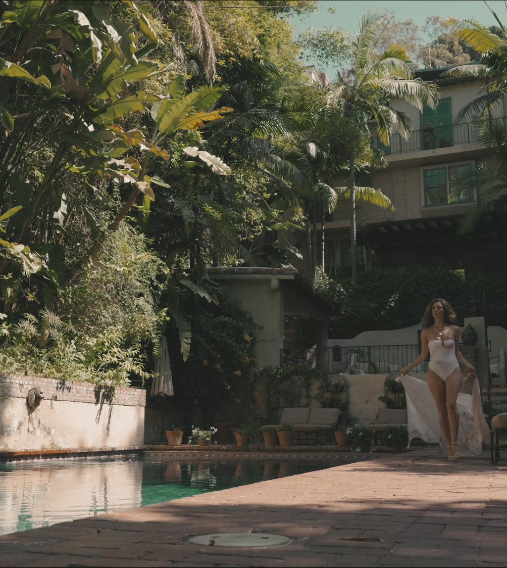 Slip into elevated beach glamour with this high-leg, cheeky-coverage one piece crafted to flatter your natural curves. The soft pearlescent print complements its sculpting silhouette, while the pearl-stone hardware at the bust adds a luxe, resort-ready touch. Adjustable straps and a ruched neckline ensure a comfortable, customizable fit—perfect for sun-soaked getaways or effortless poolside