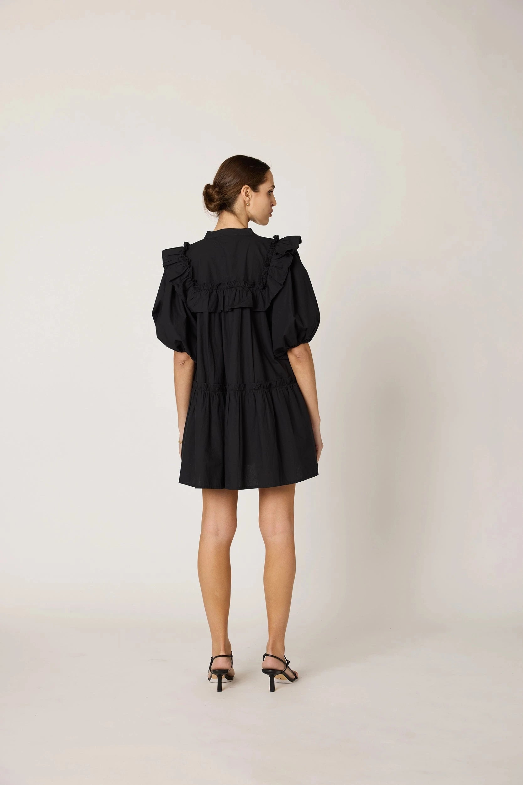 In organic cotton, the best-selling Tatiana Mini Dress features puff sleeves and a ruffle detail at the yoke. Pockets make this dress the perfect choice for a combination of style and convenience.
